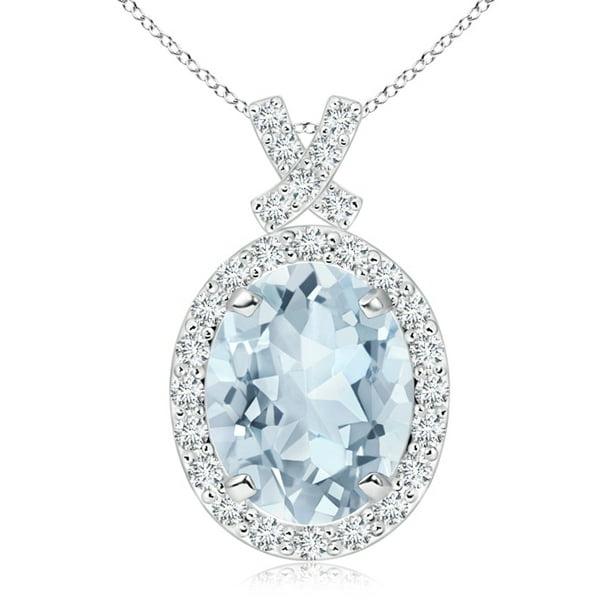 Angara - Vintage Style Aquamarine Pendant with Diamond Halo in 14K White Gold (10x8mm Aquamarine) - SP0149AQ-WG-A-10x8 - Walmart.com - Walmart.com