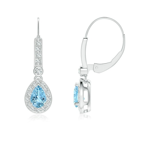 Angara - 0.6 Carat Vintage Style Aquamarine Drop Earrings with Diamond Halo For Women in Platinum (6x4mm Aquamarine) - Walmart.com - Walmart.com