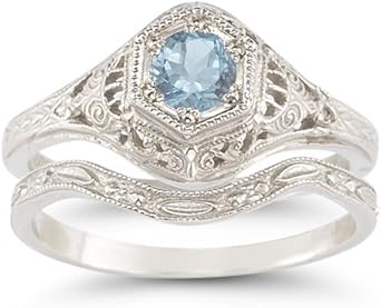 Amazon.com: Antique-Style Aquamarine Wedding Ring Set: Jewelry