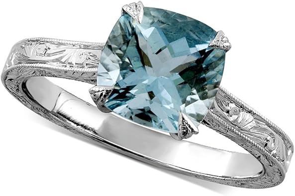 Amazon.com: Vintage Style Sterling Silver Genuine Natural Aquamarine Ring (2 1/2 CT.T.W): Jewelry