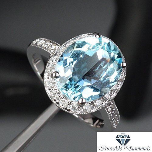 Amazon.com: 14k Large Oval Cut Aquamarine Diamond Pave Halo Antique Style Setting Gemstone Engagement Ring: Handmade