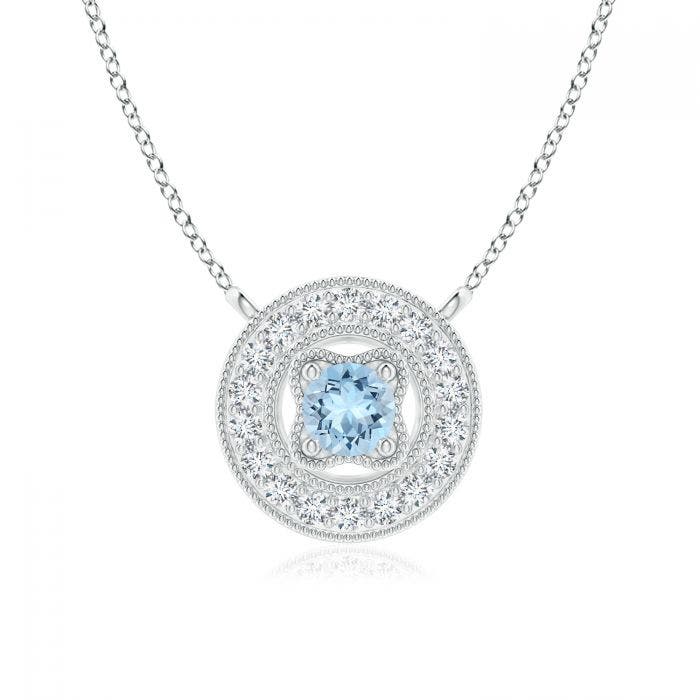 Vintage Style Aquamarine Halo Pendant with Milgrain | Angara