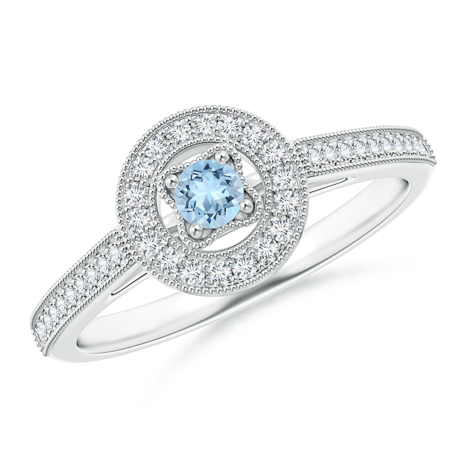 Vintage Style Aquamarine Halo Ring with Milgrain Detailing | Angara