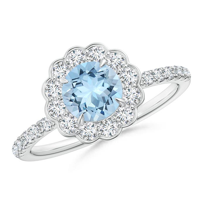 Vintage Style Aquamarine & Diamond Scalloped Halo Ring | Angara
