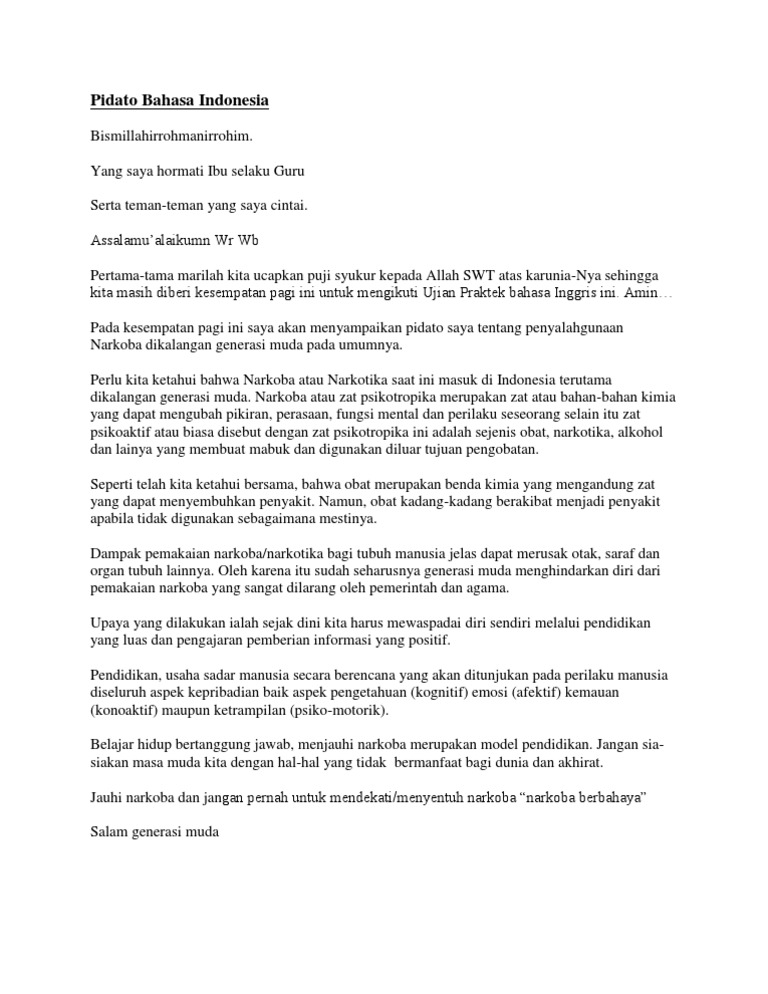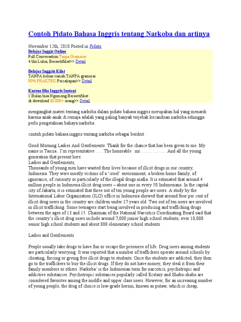 DOC) Contoh pidato singkat Bahasa Inggris tentang Narkoba (spech …