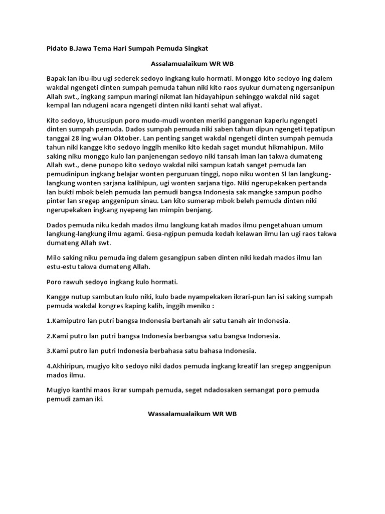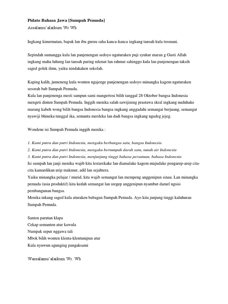 Pidato teks bahasa jawa tema sumpah pemuda - Thegorbalsla