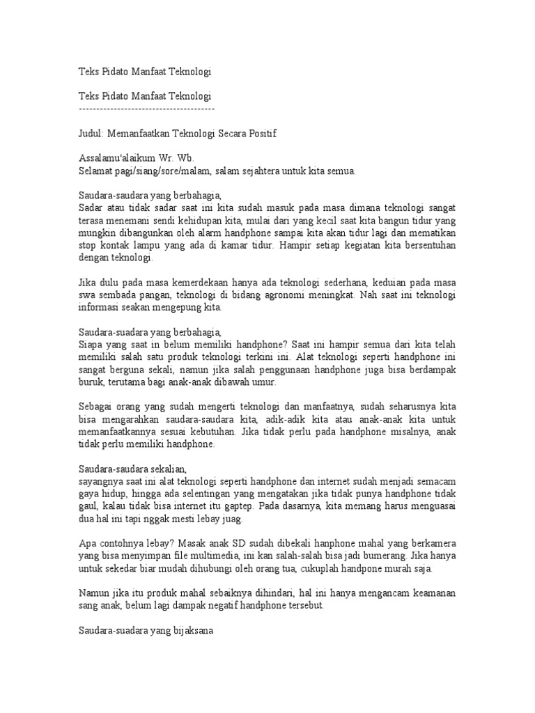 Teks Pidato Manfaat Teknologi