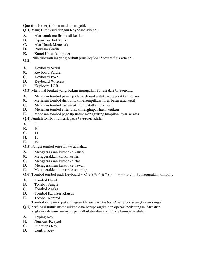 Mengetik 10 Jari - pustaka- jujur tanpa melihat kunci jawaban …