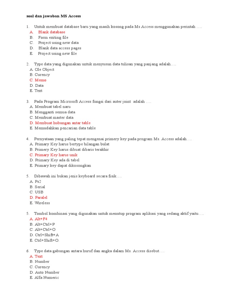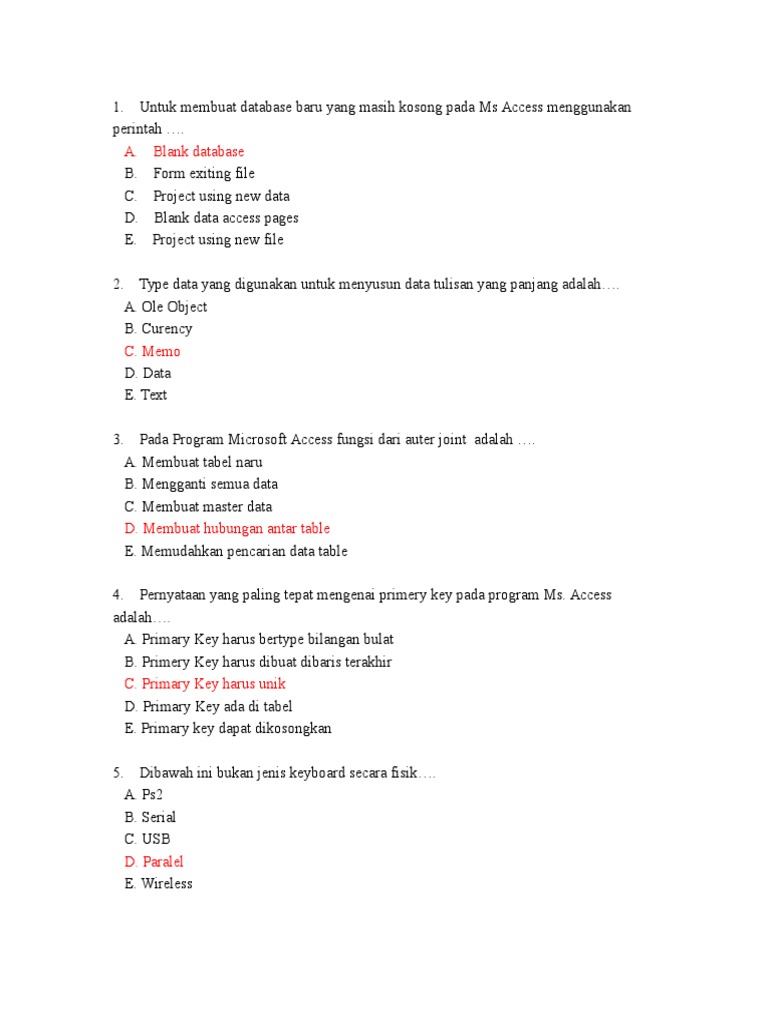 Soal Pilihan Ganda: Tes Formatif Otomatisasi Perkantoran