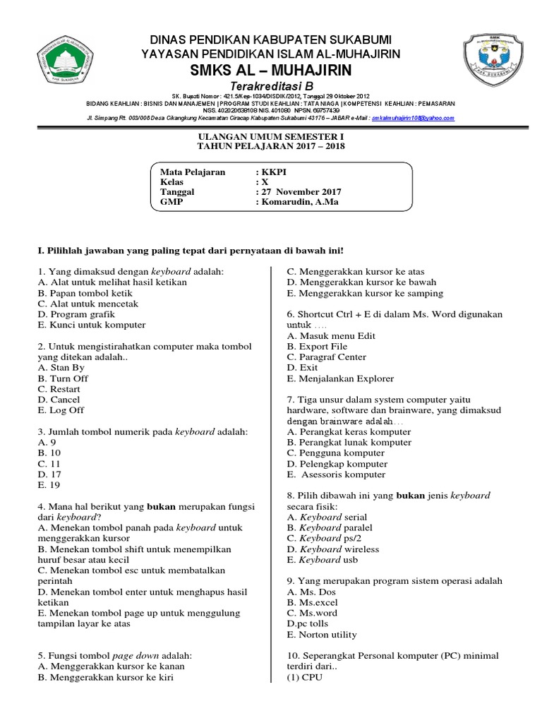 Latihan Soal KKPI SMK Kelas X Semester Genap Blog Seputar Dunia …