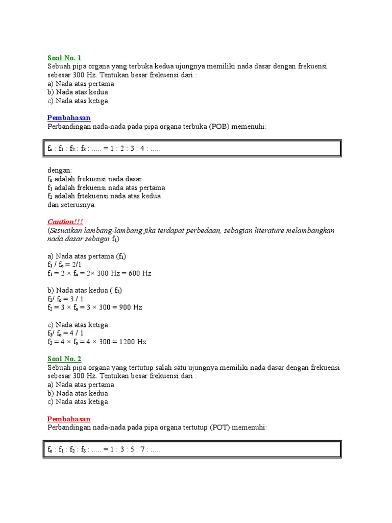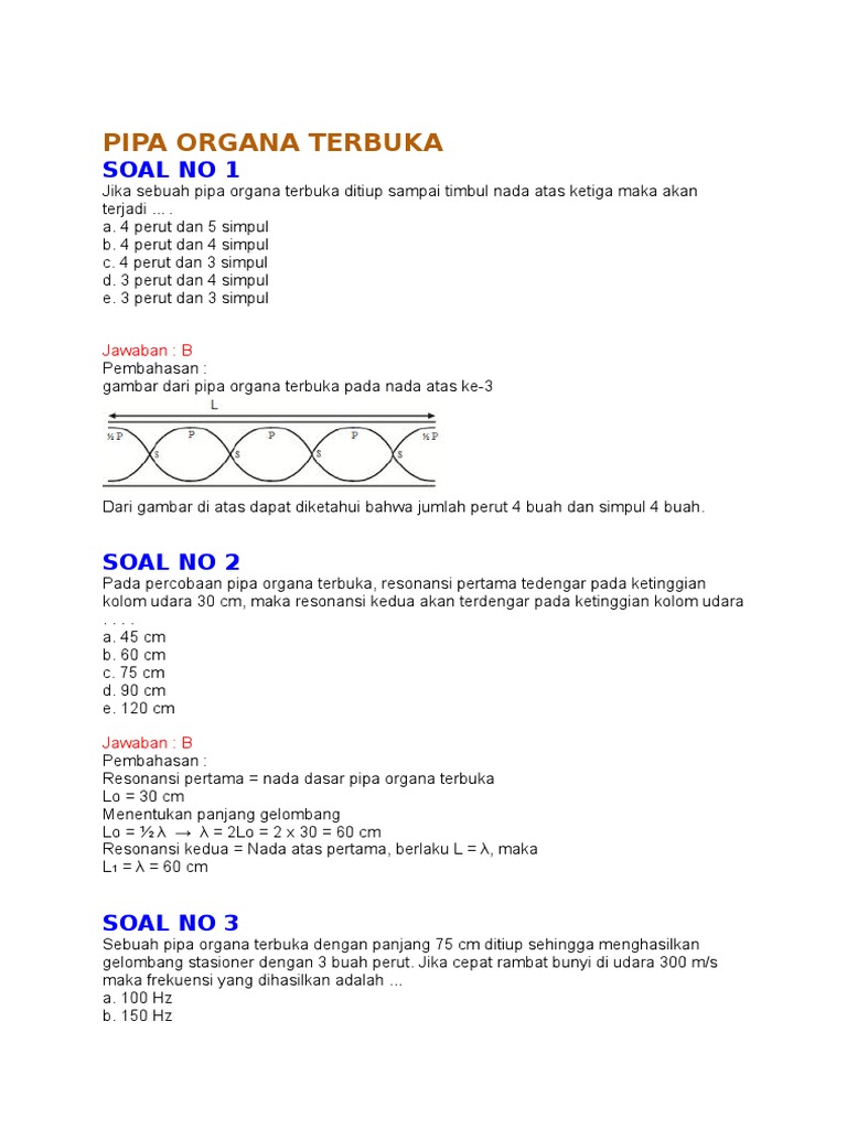 Soal Dan Pembahasan Bunyi Pipa Organa