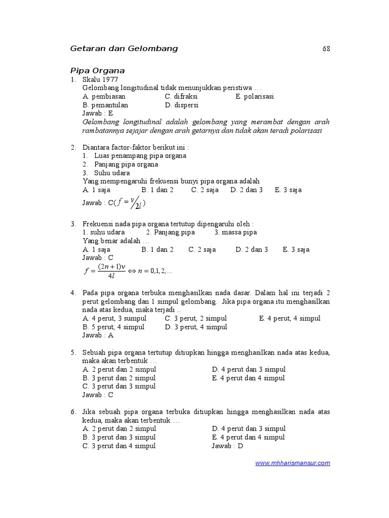 Kumpulan Soal dan Pembahasan Fisika – Gelombang bunyi, Pipa Organa …