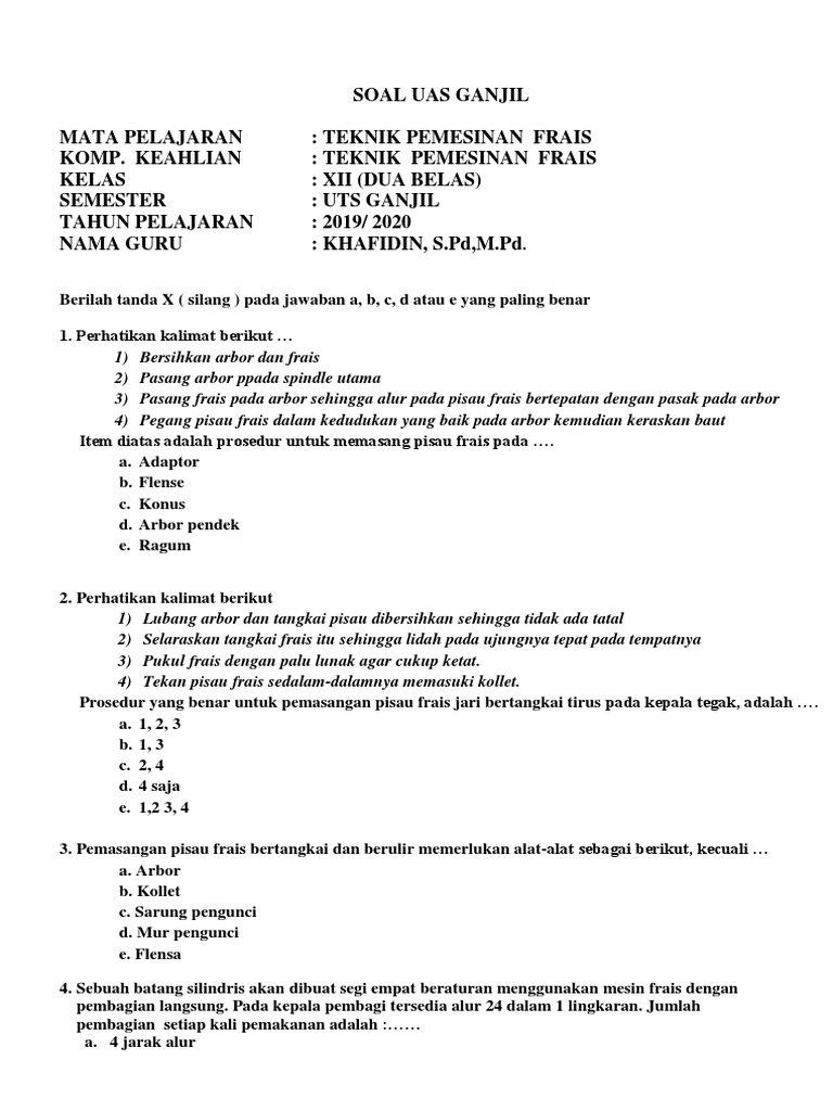 DOC) Soal dan Pembahasan MESIN FRAIS | Indra Pratama - Academia.edu