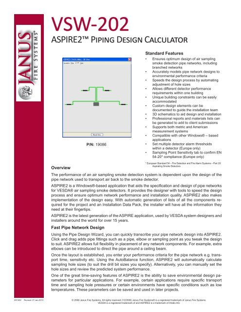 DS1062 VSW-202 ASPIRE2 Piping Calculator - Janus Fire Systems