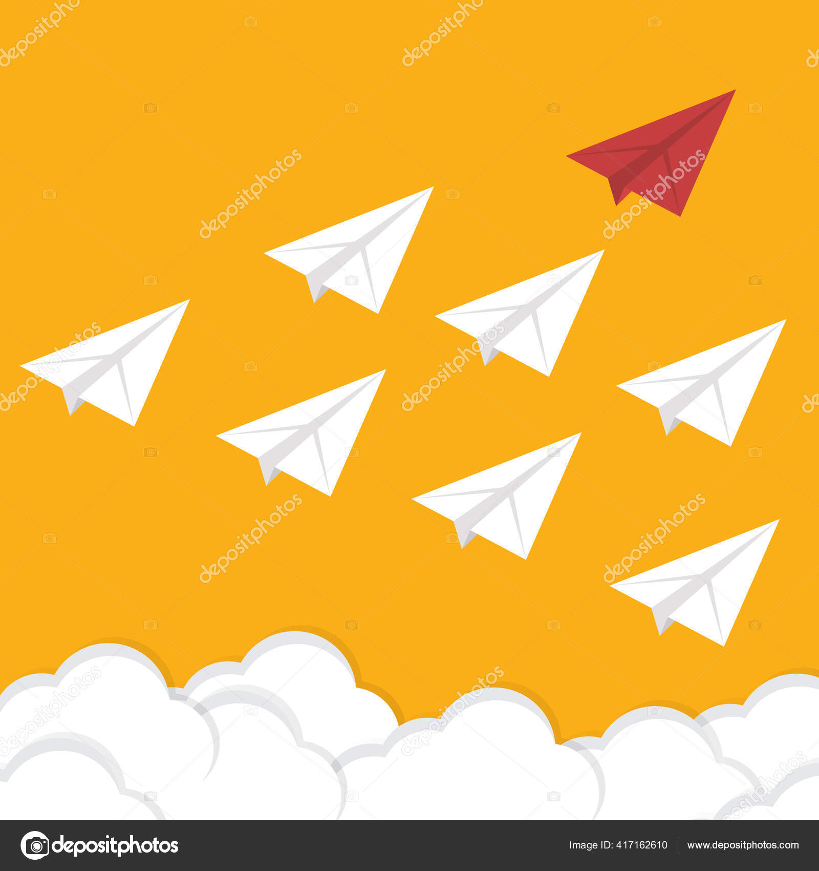 Pesawat Kertas Merah Airplane Memimpin Pesawat Kertas Putih Konsep …