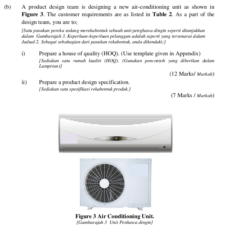 Solved: (b) A Product Design Team Is Designing A New Air-c …