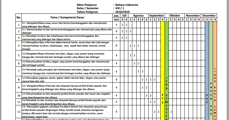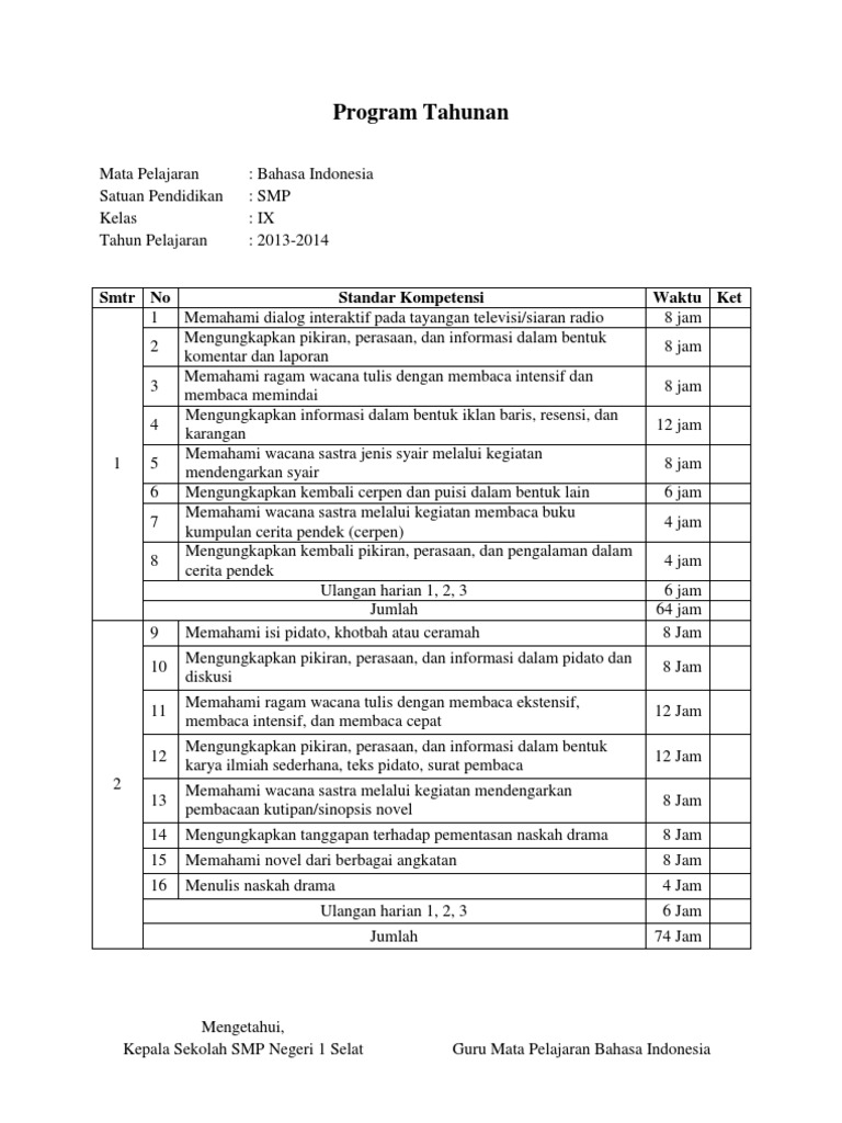 Program Tahunan Smp Kelas 8 Kurikulum 2013 Bahasa Indonesia