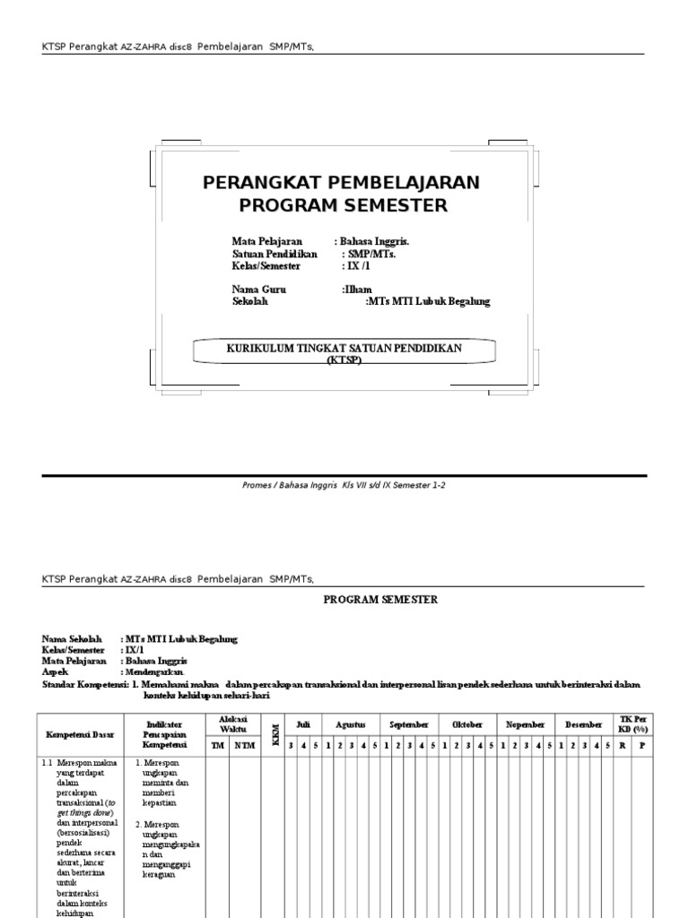 Program Tahunan dan Program Semester 1 Kelas 9 (Kurikulum 2013 …