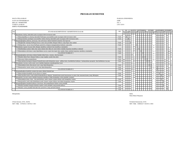 Program Semester Bahasa Indonesia Untuk Smp Kelas Ix Semester 1 …