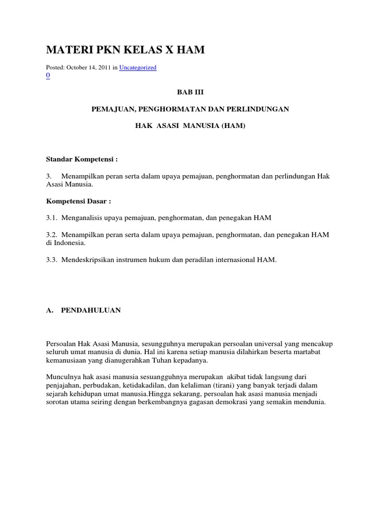 Kelas X KD III Pemajuan, Penghormatan Dan an HAM