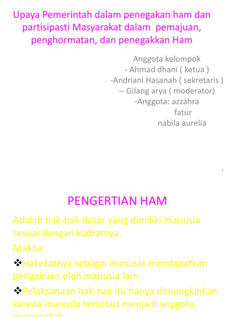 PPT - Peran Serta Dalam Upaya Pemajuan, Penghormatan, Dan Penegakan HAM Di Indonesia PowerPoint Presentation - ID:3562237