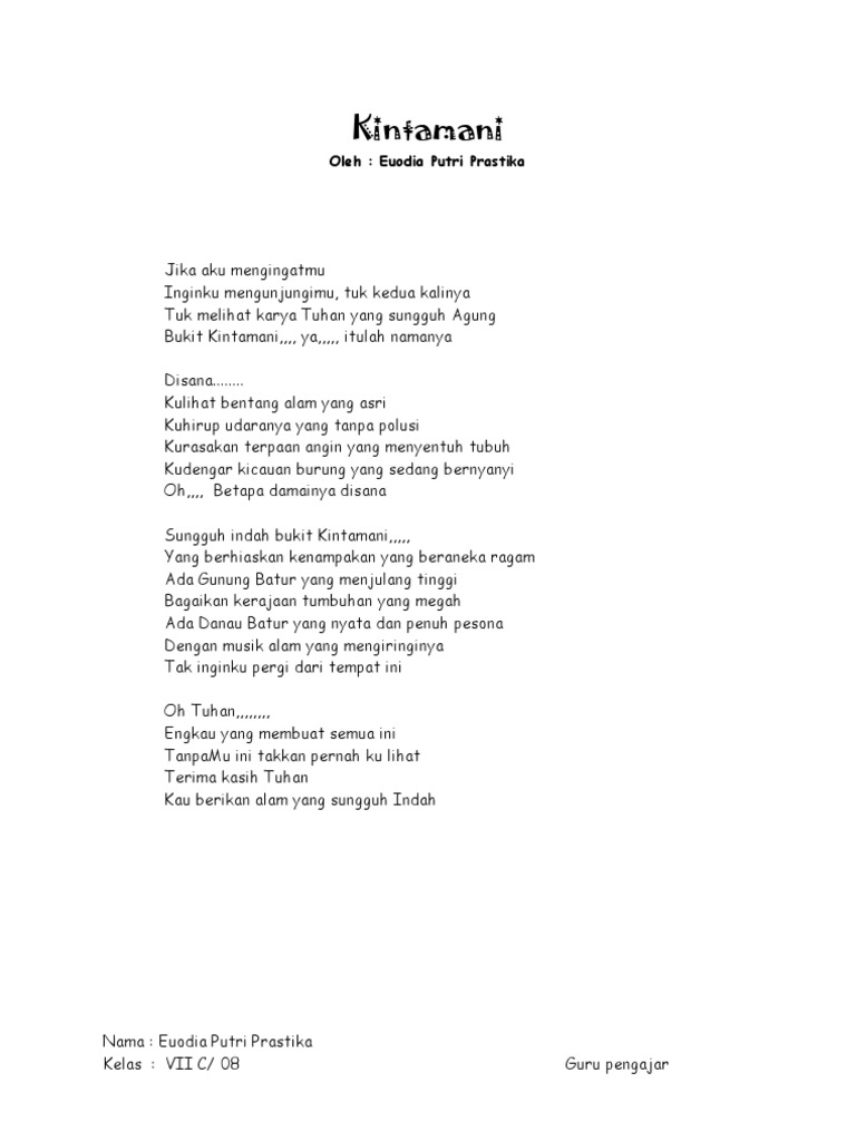 buatlah 1 contoh puisi berbahasa bali tentang lingkungan beserta terjemahan ke bahasa indonesia - Brainly.co.id