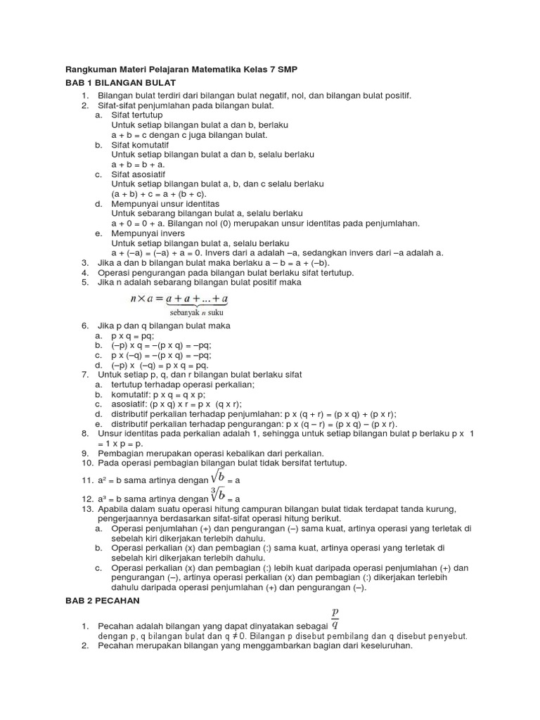 Rangkuman Matematika Kelas 7 Smp