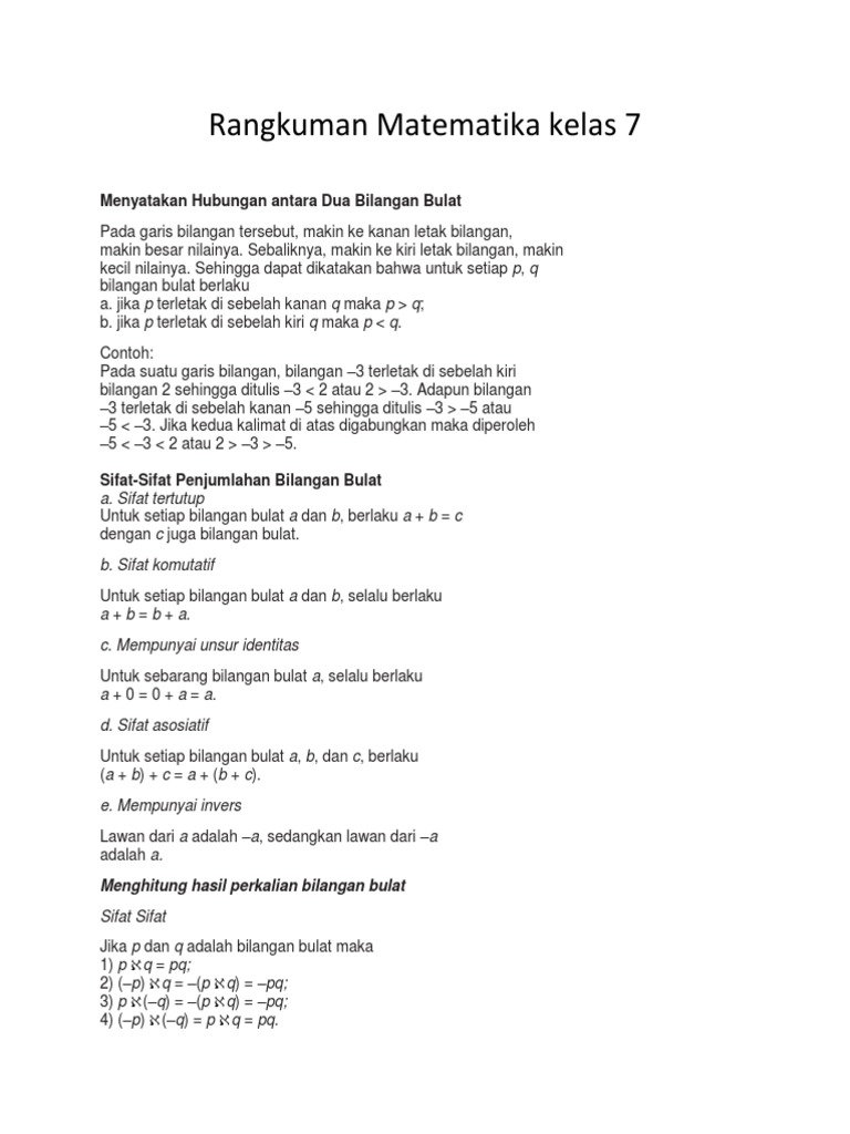 Rangkuman Matematika Kelas 7