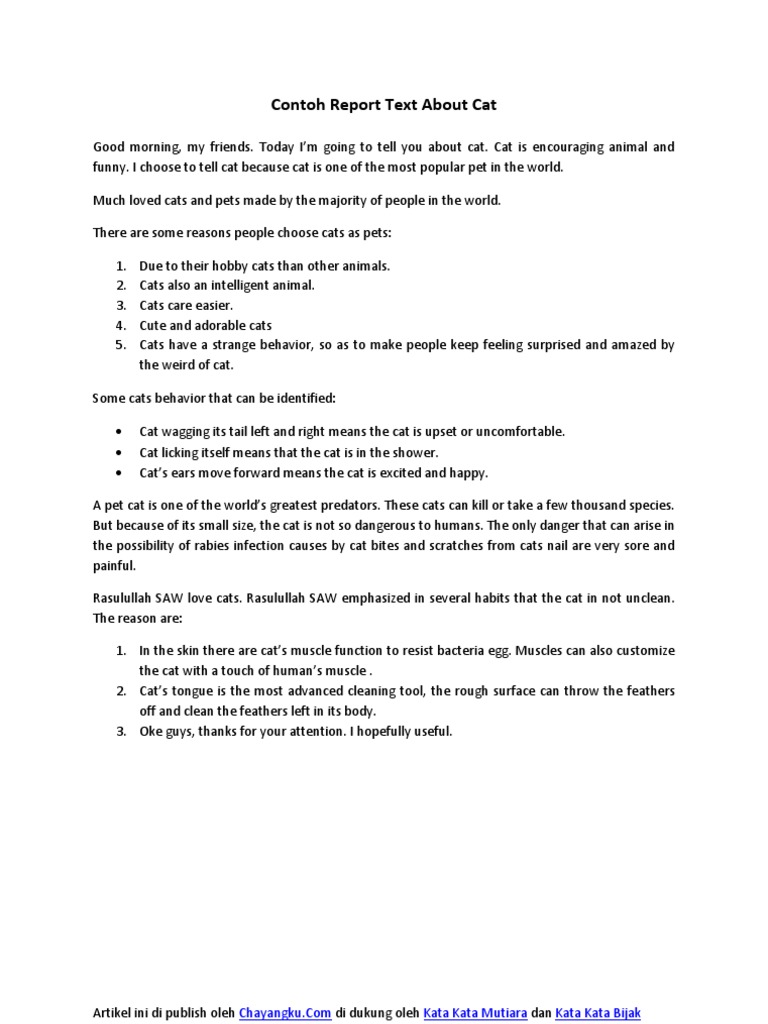 Contoh Report Text about Cat dan terjemahannya terbaru 2015 | Kata Kata Bijak Bahasa Inggris dan Artinya