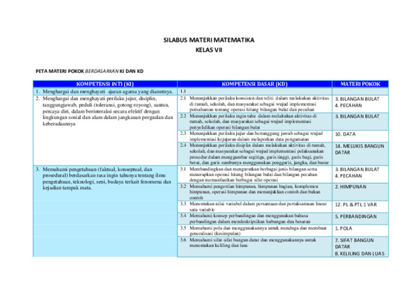 DOC) All Silabus Mat Kelas VII Kur 2013 | Clieff Sumangkut - Academia.edu