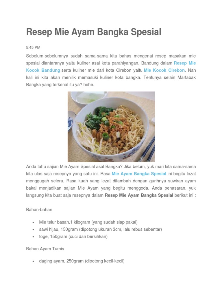 Blog Pendidikan: Resep Mie Ayam Bangka Asli Spesial