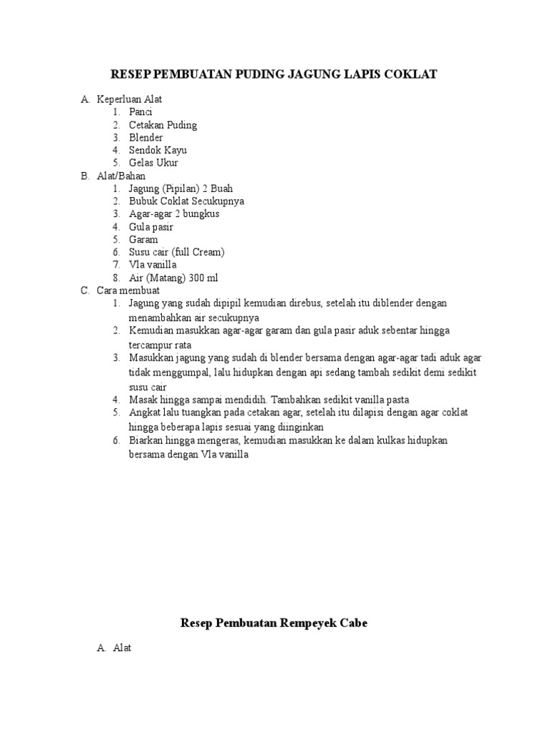 Resep Puding Jagung Lapis Coklat Santan Custard | Resep, Puding …