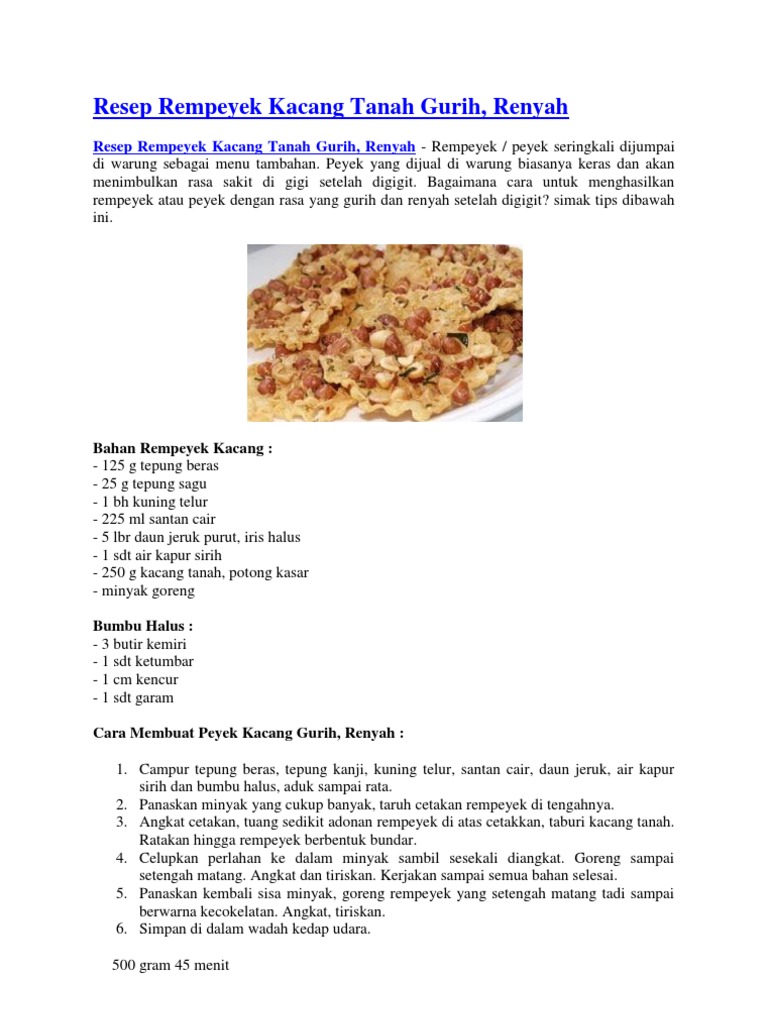 Resep Rempeyek Kacang Tanah Gurih, Renyah | Resep masakan, Kacang …