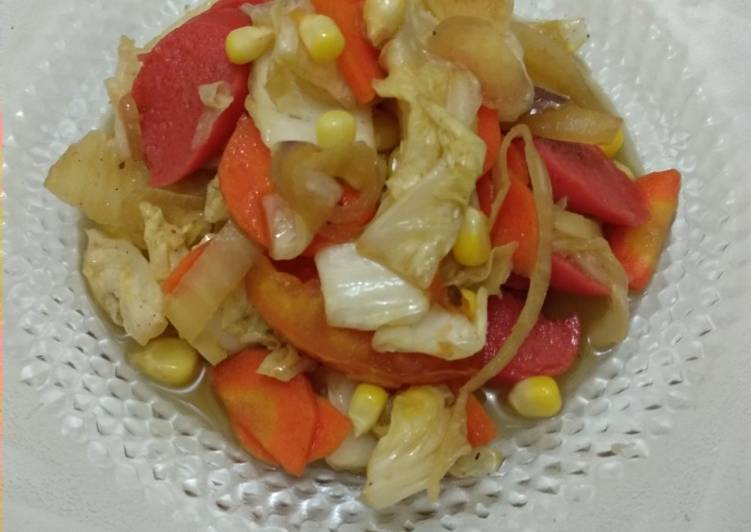 Resep: Sawi putih wortel & sosis saus tiram yang Renyah!