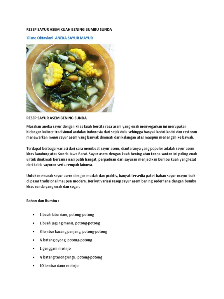 RESEP SAYUR ASEM KUAH BENING BUMBU SUNDA - Aneka Resep Masakan …