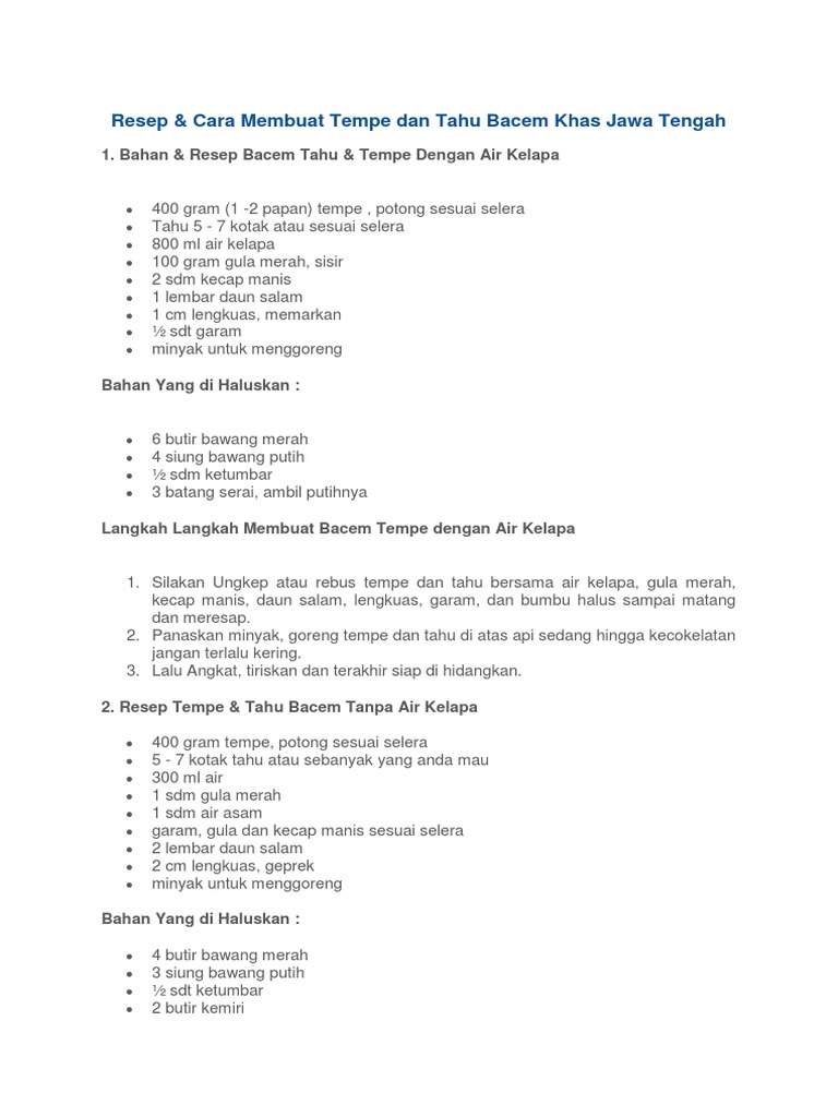 √ RESEP TEMPE & TAHU BACEM KHAS JAWA TENGAH MAK NYUSS …