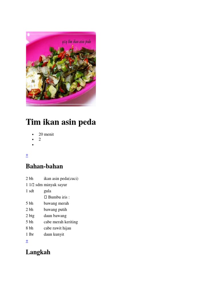 RESEP Nikmat - RESEP TIM IKAN ASIN PEDA | Facebook