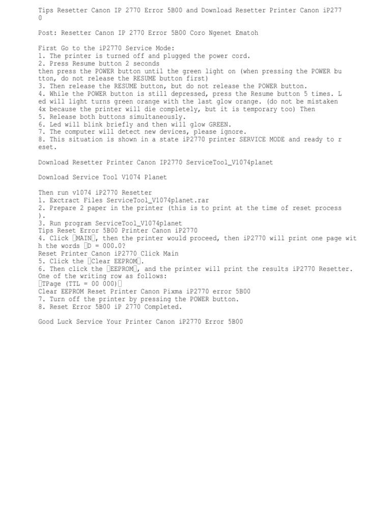 Resetter Canon ip2770 | Canon Ip2770 Service Required