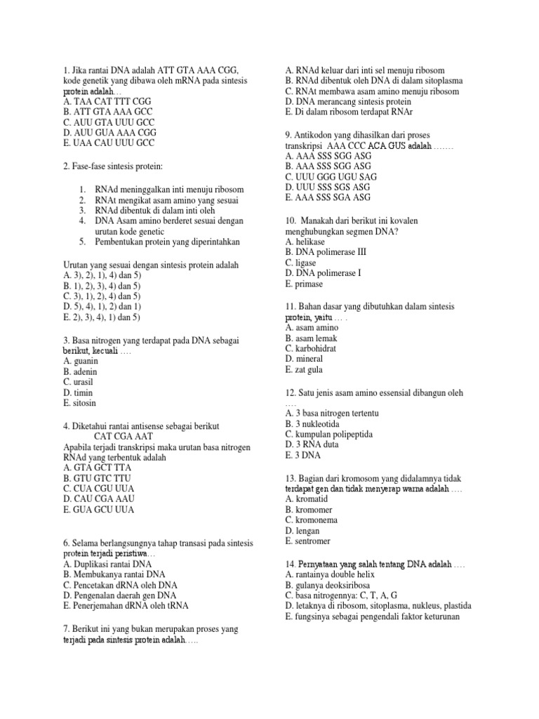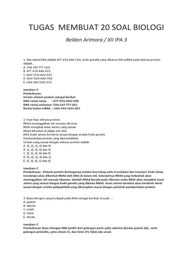 Soal dan jawaban tentang sintesis protein (Biologi) | Usaha321.net
