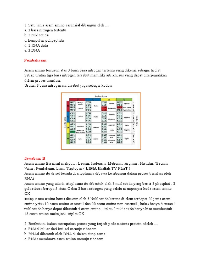 Pembahasan Soal Ujian Nasional Sintesis Protein