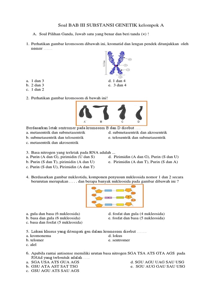 SOAL BIOLOGI SUBSTANSI GENETIKA DAN GENETIKA | Biologi