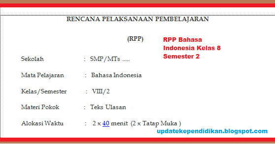 RPP Bahasa Indonesia SMP Kelas 8 Semester 2 Tahun 2019/2020 Update - Data Pendidikan Update