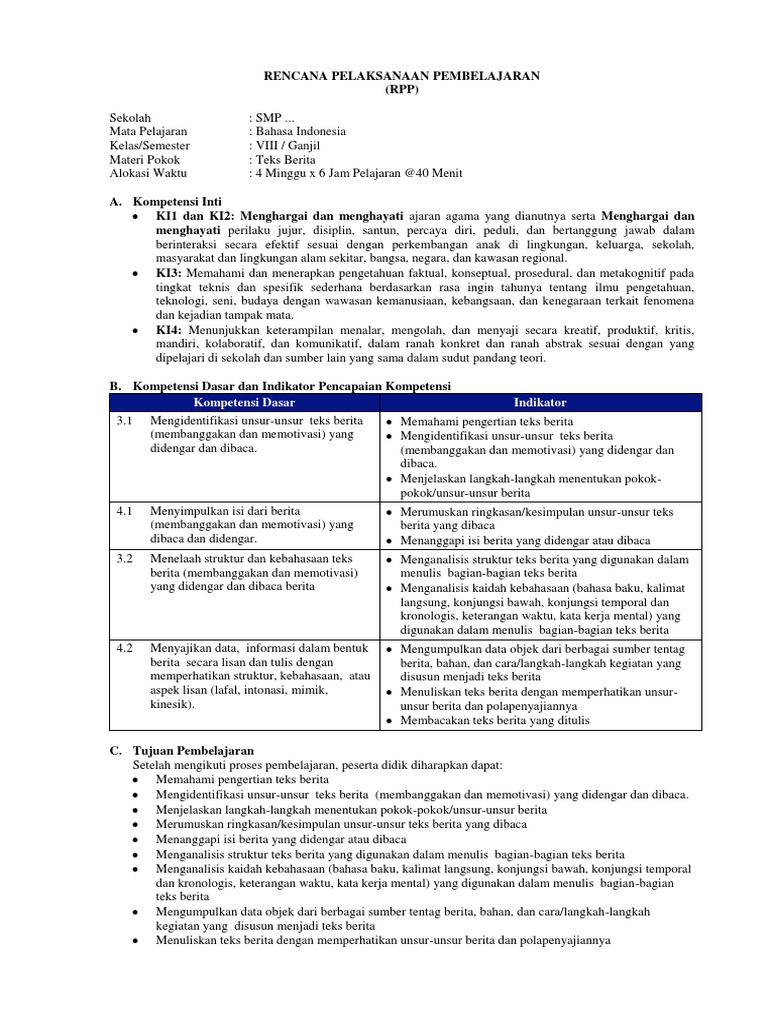 Rpp Bahasa Indonesia Smp Kelas 8
