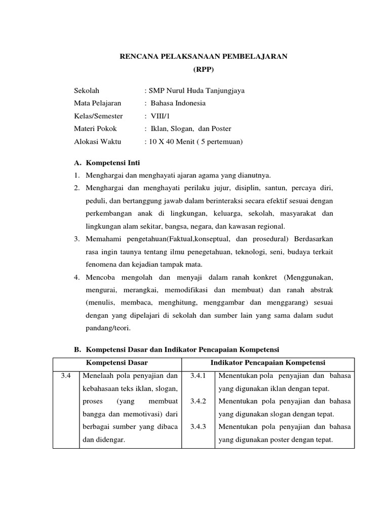 RPP 1 Lembar SMP Bahasa Indonesia Kelas 7 8 9 Revisi 2020 Halaman all - Kompasiana.com