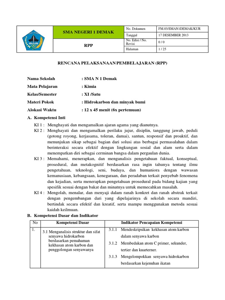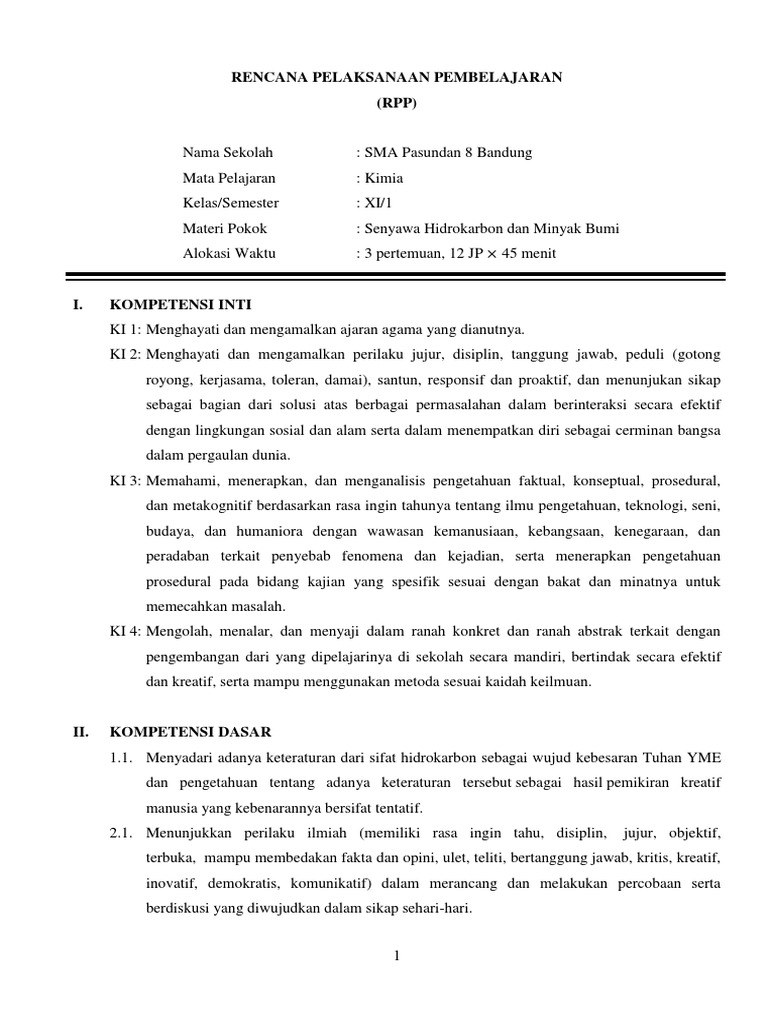 DOC) RPP 1 Hidrokarbon & Minyak Bumi | Dahlia Iyak - Academia.edu