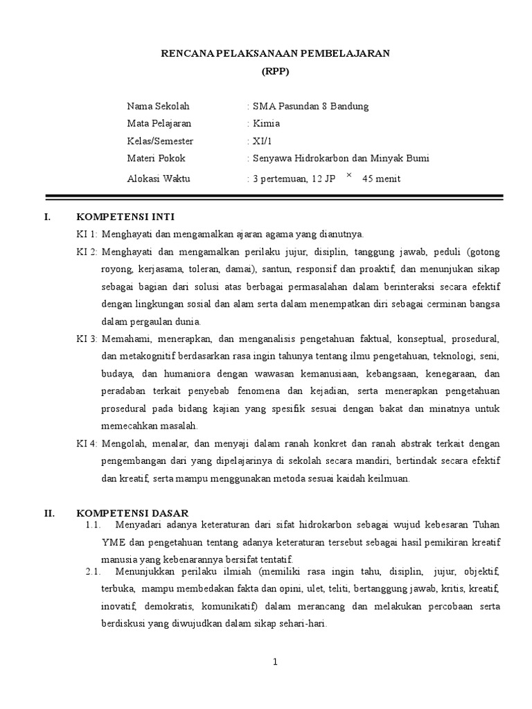 Rpp Hidrokarbon Dan Minyak Bumi Kurikulum 2013