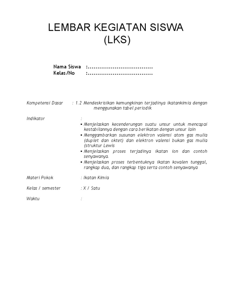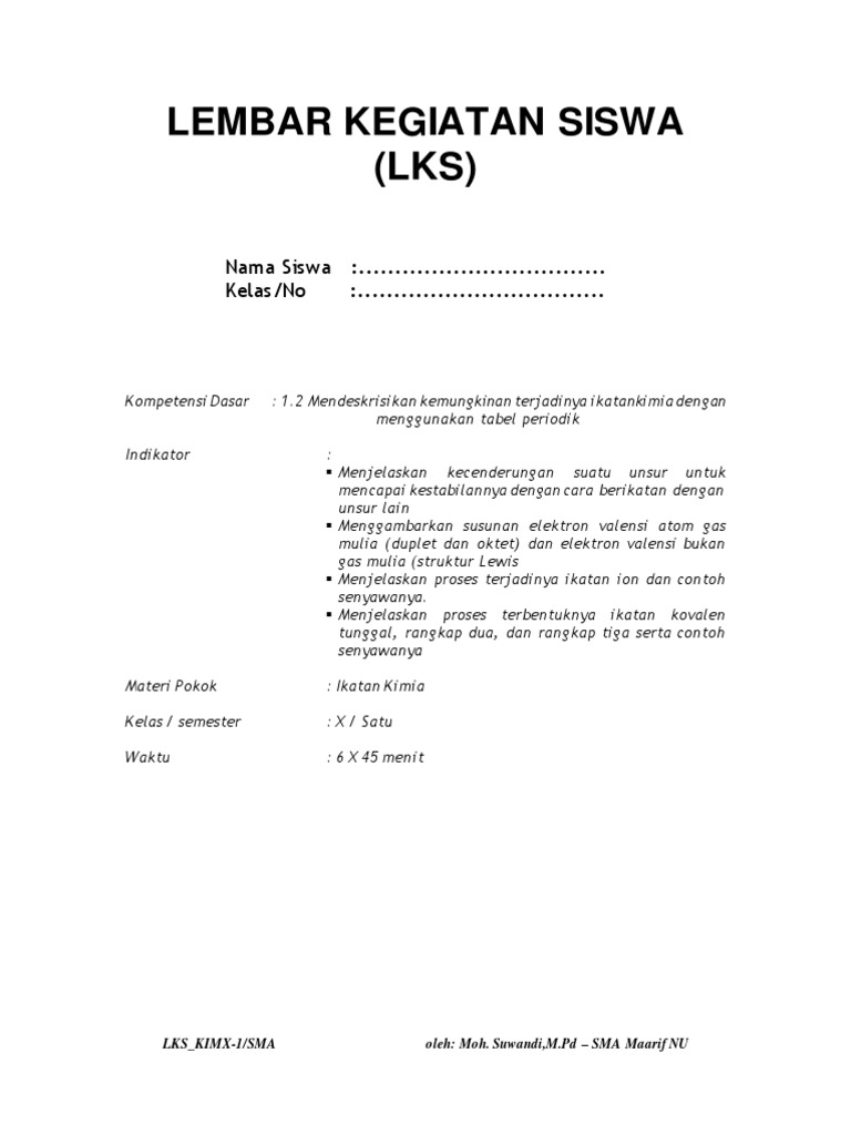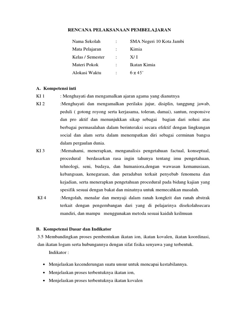 PDF) RPP K13 Revisi 2016 KD 3.5 IKATAN KIMIA Untuk SMA Kelas XI (Ikatan ion, ikatan kovalen, ikatan kovalen koordinasi, ikatan logam) | Febrina Santa Theresia Siregar - Academia.edu