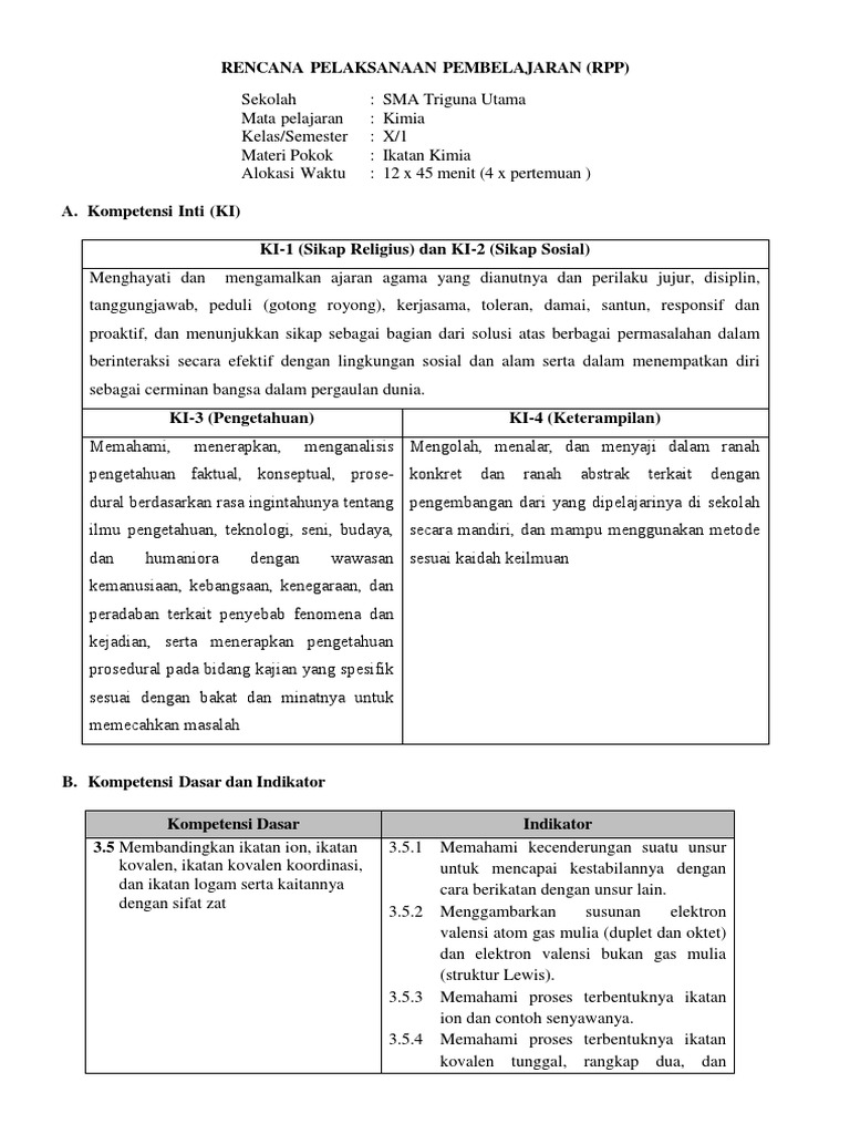 DOC) RPP IKATAN KIMIA (Pertemuan 1) | Bagas Rahmata - Academia.edu