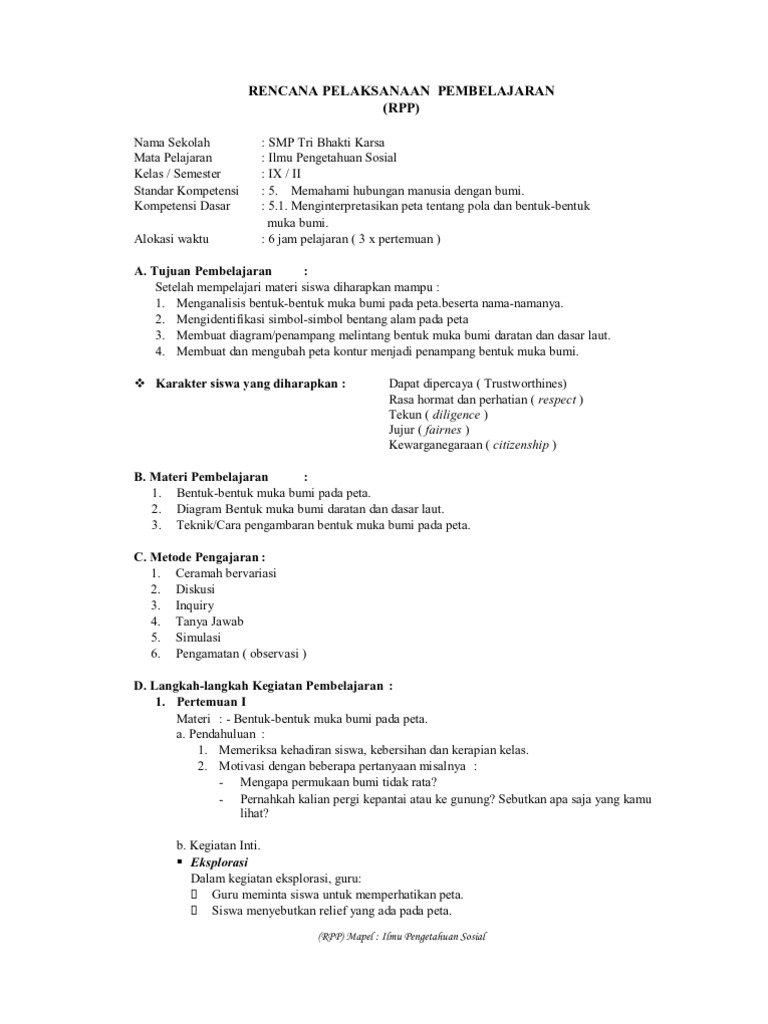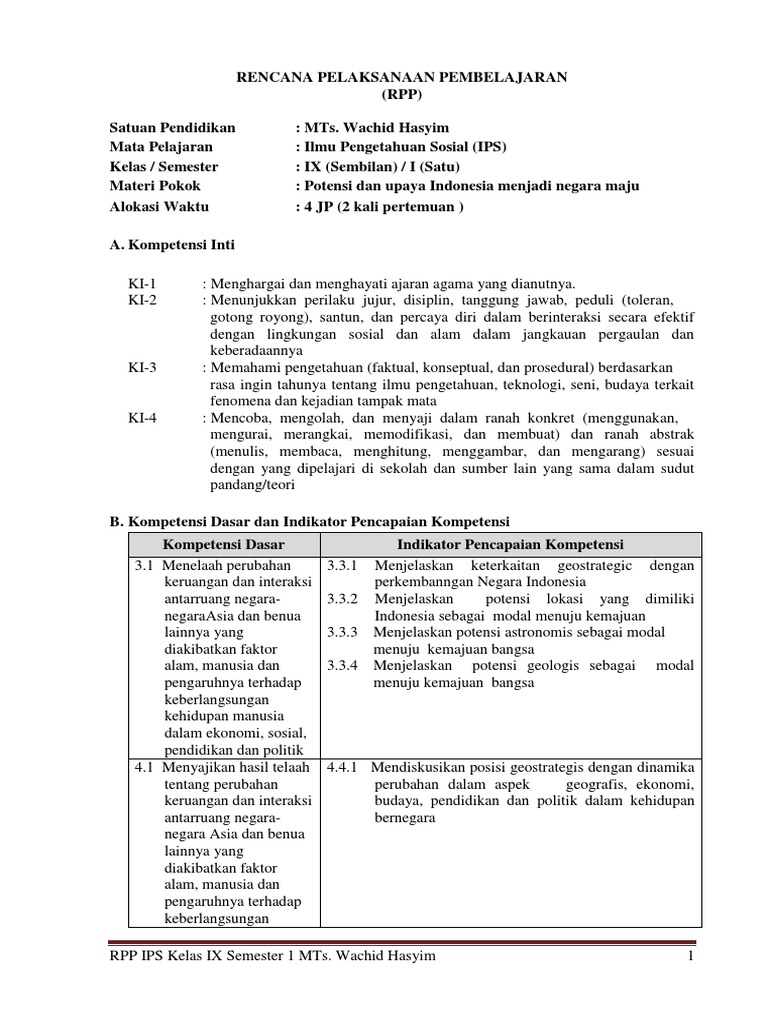 RPP IPS 1 Lembar / Halaman Kelas 9 SMP Semester 2 - dicariguru.com