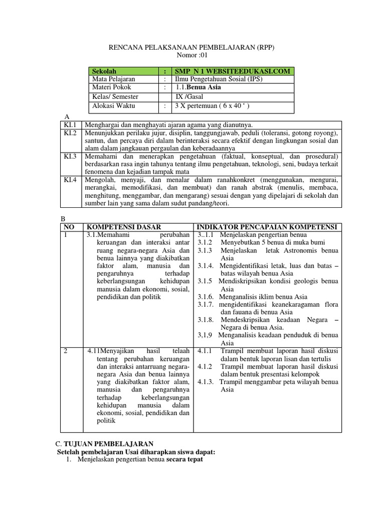 Rpp Ips Kelas 9 Smp/Mts Semester 1 Kurikulum 2013 Revisi 2018 …